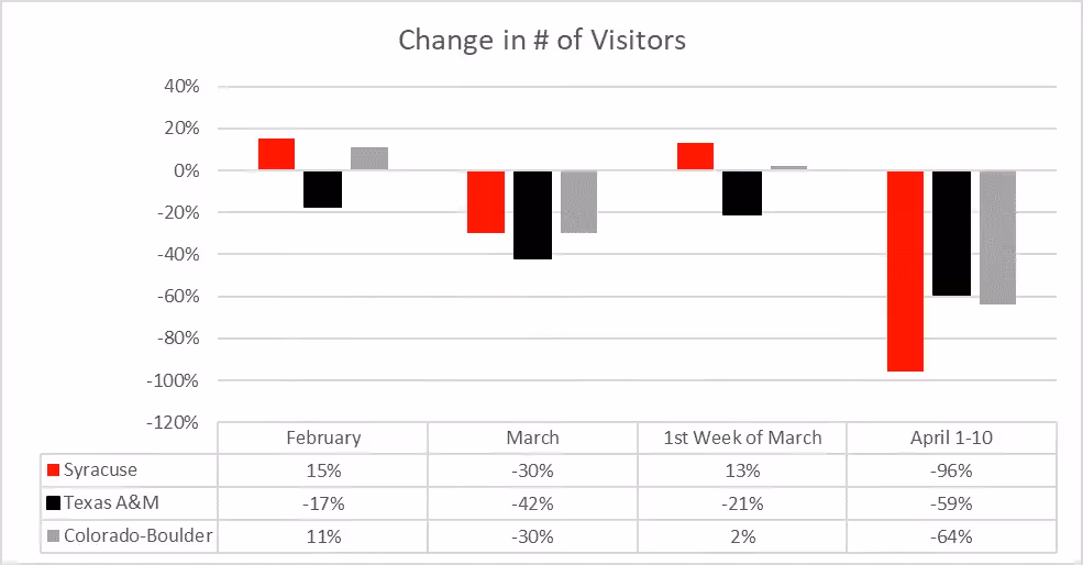 foot traffic fell 96%! Some students remained at the properties near the other two schools, but clearly not many.