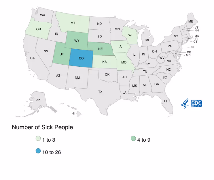 1. Sharp Increase in Hospital Visits in Colorado: On the week of September 23, hospital visits in Colorado surged by a staggering 91%, directly aligning with the CDC’s identification of this state as the epicenter of the outbreak. The following weeks also saw elevated levels, with increases of 70%, 77%, and 74% respectively through mid-October. This sustained rise in hospital visits aligns with the timeline of reported E. coli cases and underscores the severity of the outbreak in Colorado.