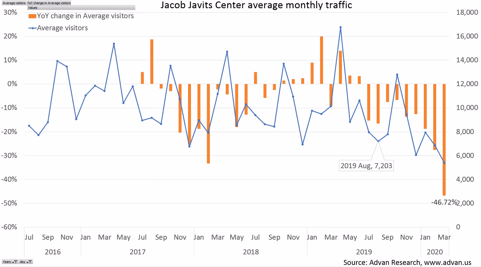 We analyzed the average monthly foot traffic in the Jacon Javits Center over the last 3 years.