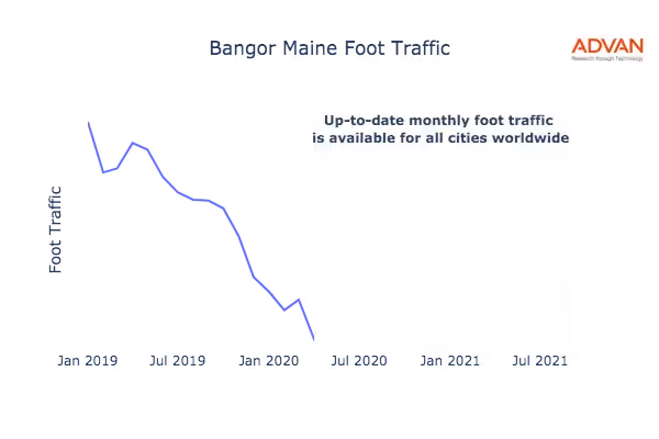 This shows the citywide foot traffic in Bangor, ME for the last few years.:
