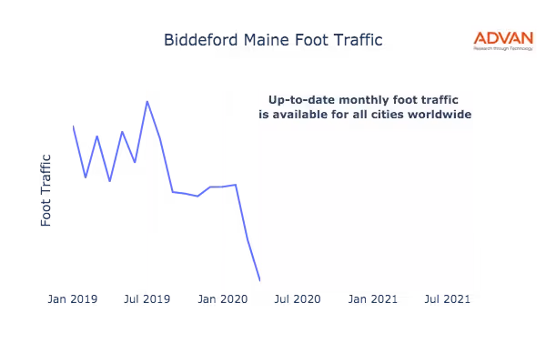 This shows the citywide foot traffic in Biddeford, ME for the last few years.: