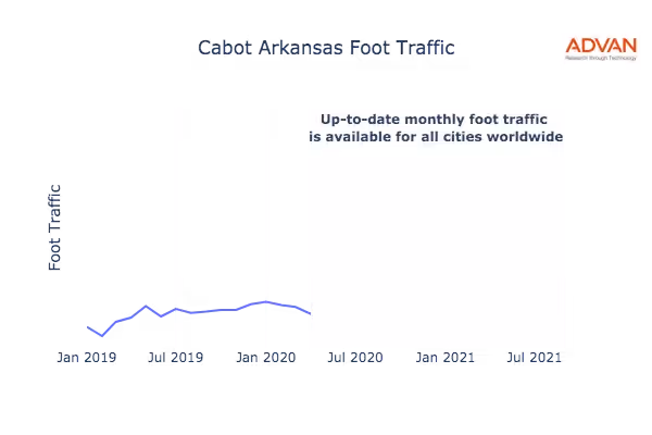 This shows the citywide foot traffic in Cabot, AR for the last few years.: