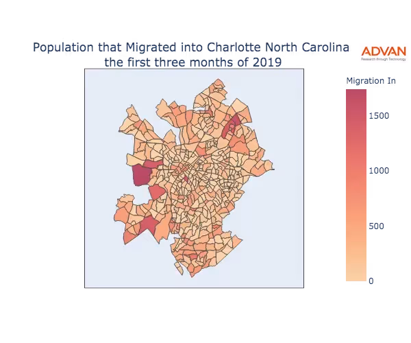 The map below shows the migration into Charlotte, NC by Census Block Group (CBG).