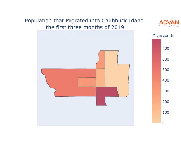 The map below shows the migration into Chubbuck, ID by Census Block Group (CBG).