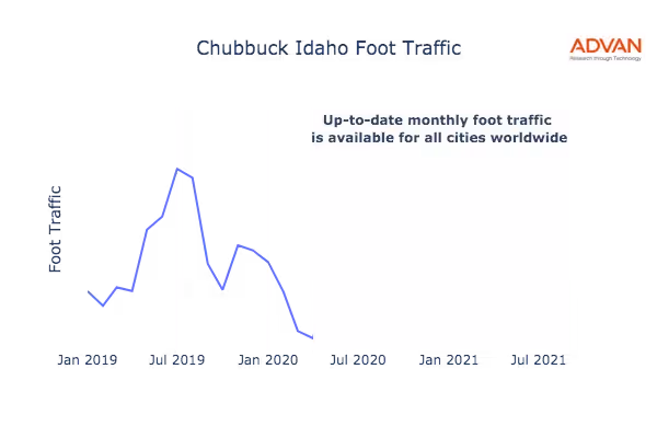 This shows the citywide foot traffic in Chubbuck, ID for the last few years.: