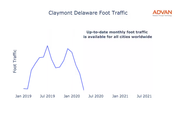 This shows the citywide foot traffic in Claymont, DE for the last few years.: