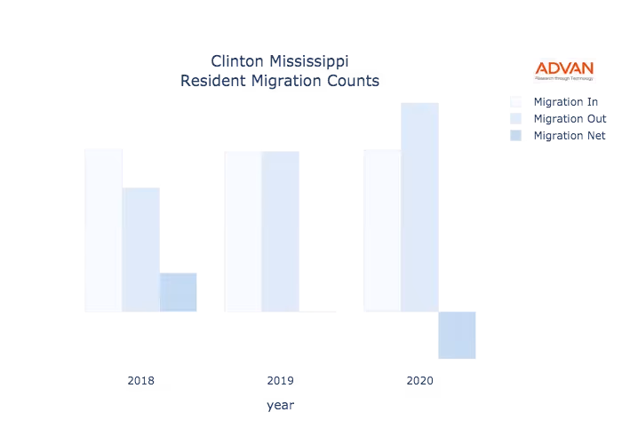 Clinton, MS Residential Migration Counts