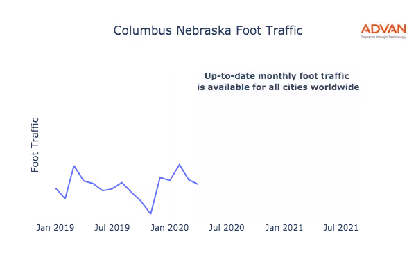 This shows the citywide foot traffic in Columbus, NE for the last few years.: