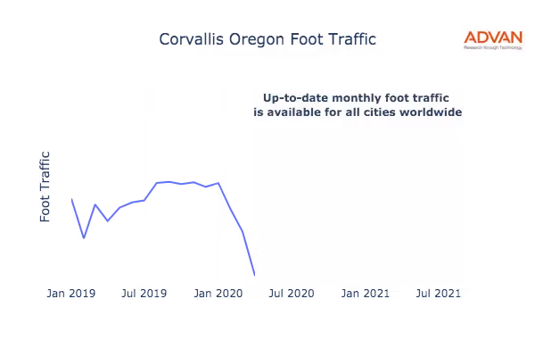 Up-to-date monthly foot traffic is available for all cities worldwide.