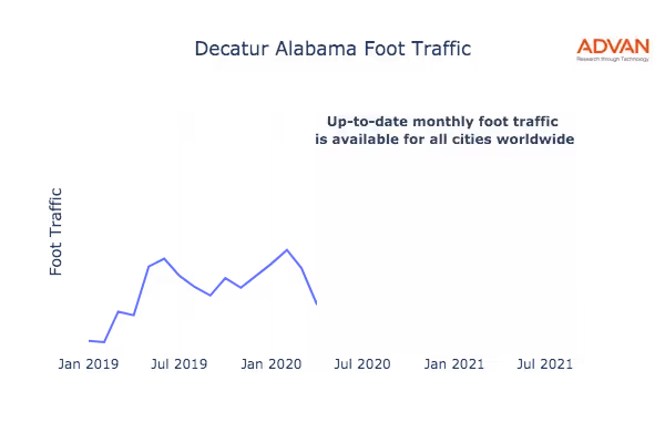 This shows the citywide foot traffic in Decatur, AL for the last few years.: