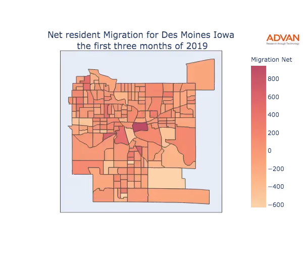 Des Moines, IA Residential Migration Counts
