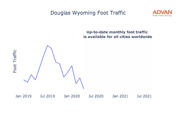 This shows the citywide foot traffic in Douglas, WY for the last few years.: