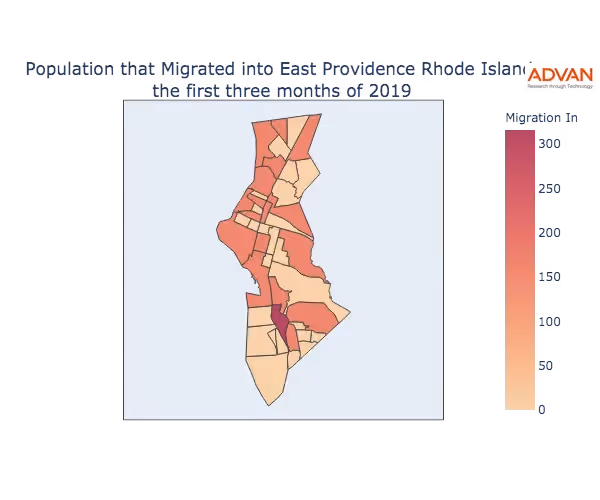 The map below shows the migration into East Providence, RI by Census Block Group (CBG).