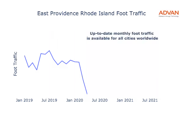 This shows the citywide foot traffic in East Providence, RI for the last few years.: