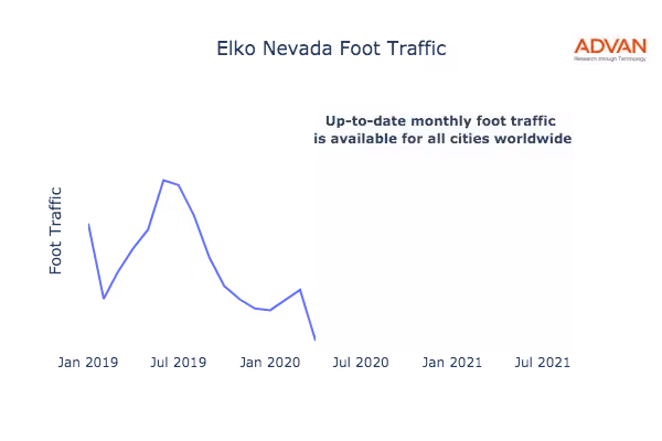 This shows the citywide foot traffic in Elko, NV for the last few years.: