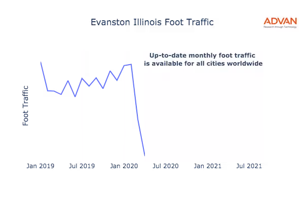 This shows the citywide foot traffic in Evanston, IL for the last few years.: