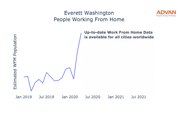This shows the citywide foot traffic in Everett, WA for the last few years.: