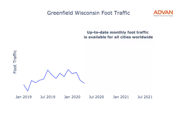 This shows the citywide foot traffic in Greenfield, WI for the last few years.: