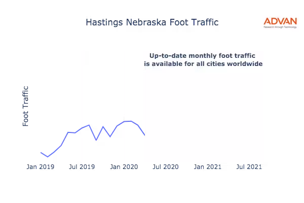 This shows the citywide foot traffic in Hastings, NE for the last few years.: