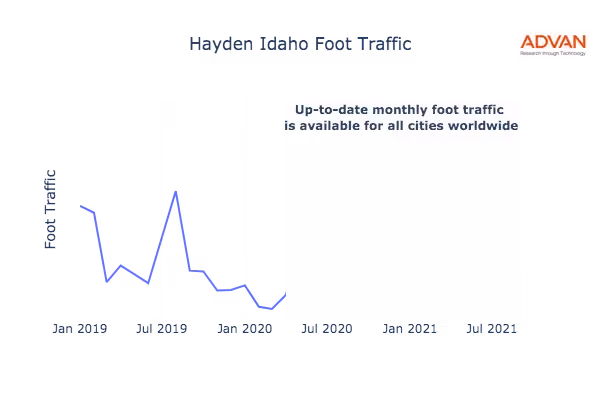 This shows the citywide foot traffic in Hayden, ID for the last few years.: