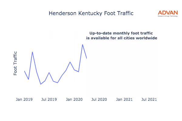 This shows the citywide foot traffic in Henderson, KY for the last few years.: