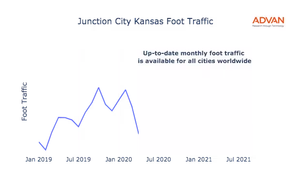 This shows the citywide foot traffic in Junction City, KS for the last few years.: