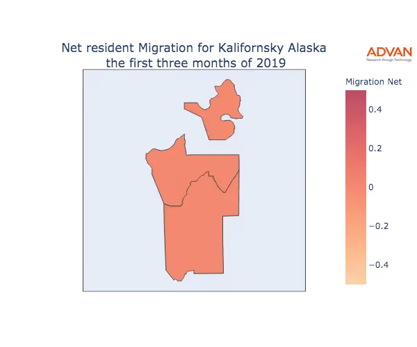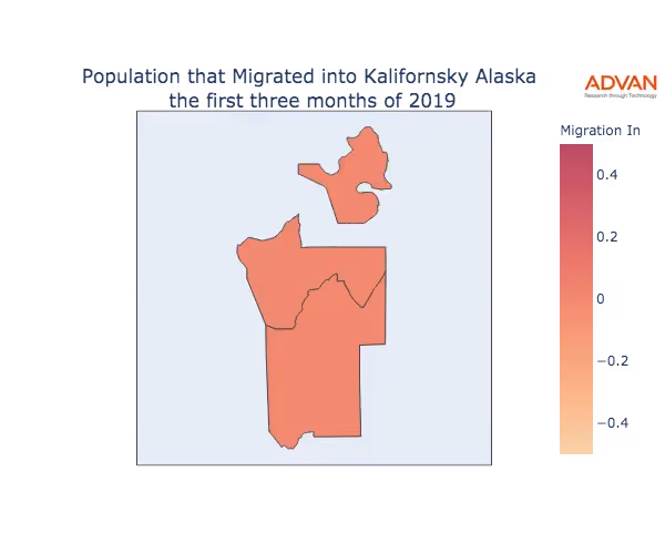 The map below shows the migration into Kalifornsky, AK by Census Block Group (CBG).