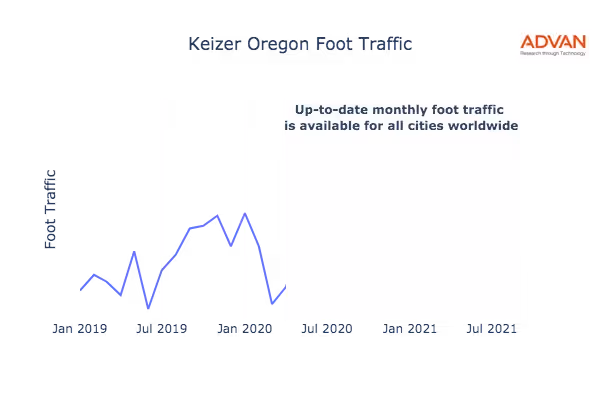 This shows the citywide foot traffic in Keizer, OR for the last few years.:
