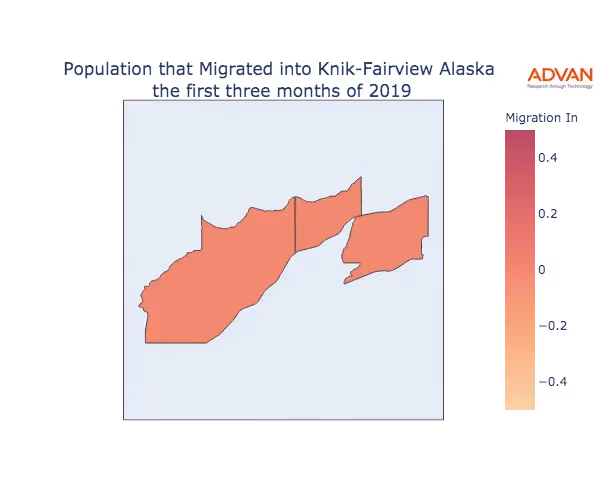 The map below shows the migration into Knik Fairview, AK by Census Block Group (CBG).