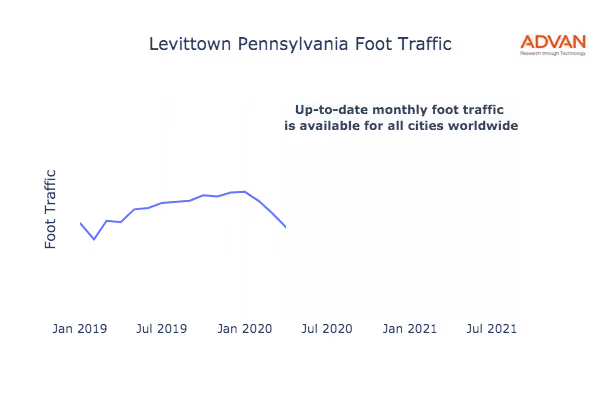 This shows the citywide foot traffic in Levittown, PA for the last few years.: