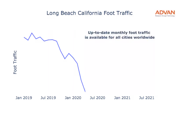 Up-to-date monthly foot traffic is available for all cities worldwide.