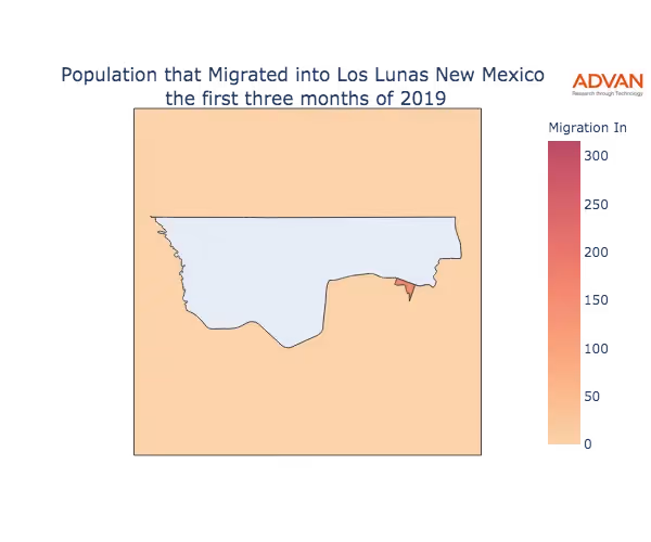 The map below shows the migration into Los Lunas, NM by Census Block Group (CBG).