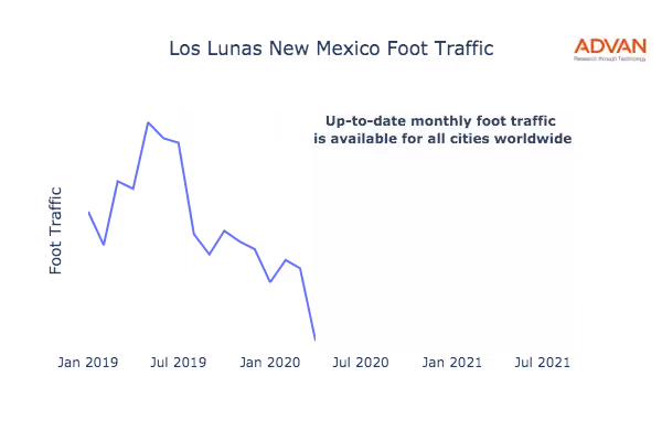 This shows the citywide foot traffic in Los Lunas, NM for the last few years.:
