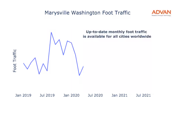 This shows the citywide foot traffic in Marysville, WA for the last few years.: