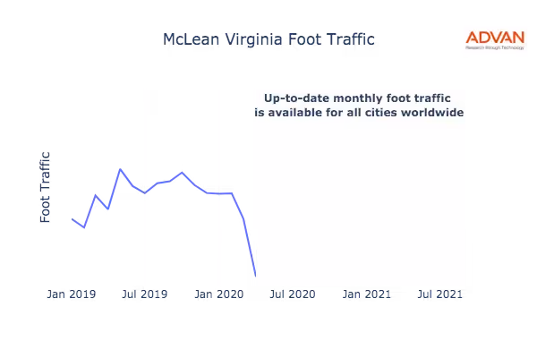 This shows the citywide foot traffic in McLean, VA for the last few years.: