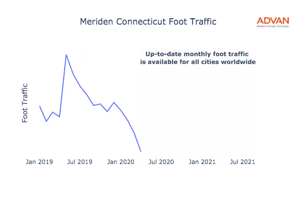This shows the citywide foot traffic in Meriden, CT for the last few years.: