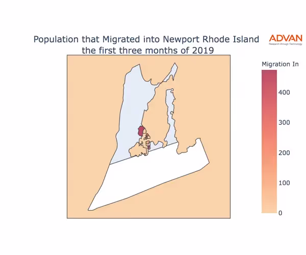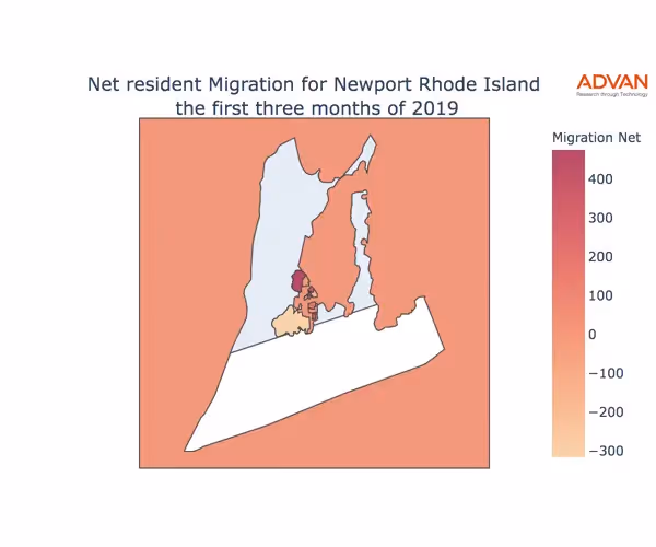 The map below shows the migration into Newport, RI by Census Block Group (CBG).