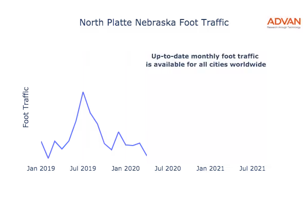This shows the citywide foot traffic in North Platte, NE for the last few years.: