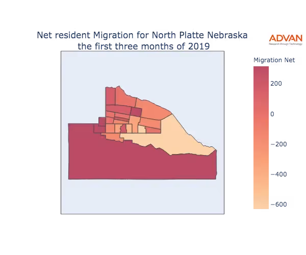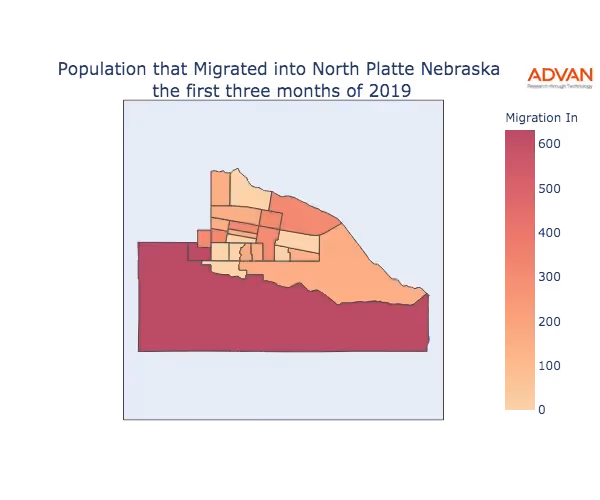 The map below shows the migration into North Platte, NE by Census Block Group (CBG).