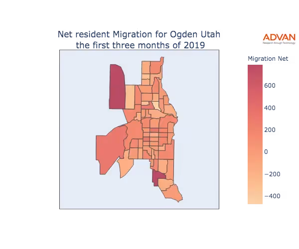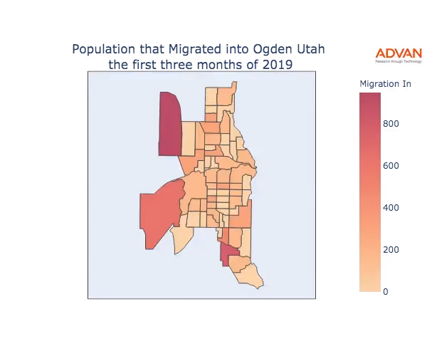 The map below shows the migration into Ogden, UT by Census Block Group (CBG).