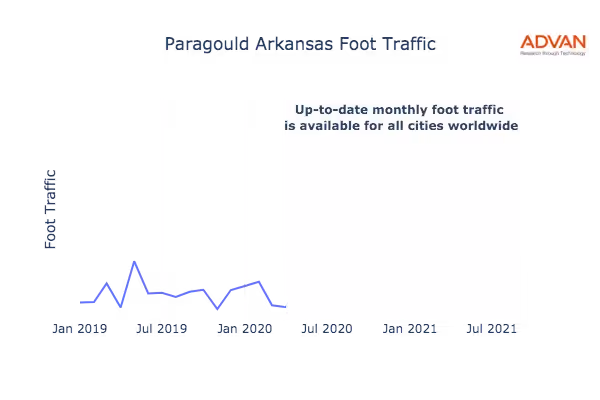 This shows the citywide foot traffic in Paragould, AR for the last few years.:
