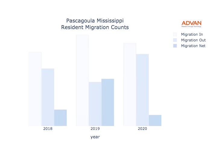 Pascagoula, MS Residential Migration Counts