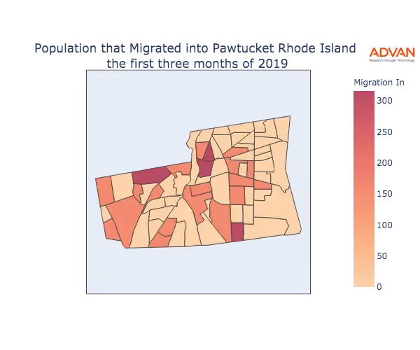 The map below shows the migration into Pawtucket, RI by Census Block Group (CBG).