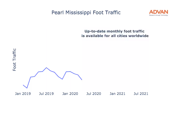 This shows the citywide foot traffic in Pearl, MS for the last few years.:
