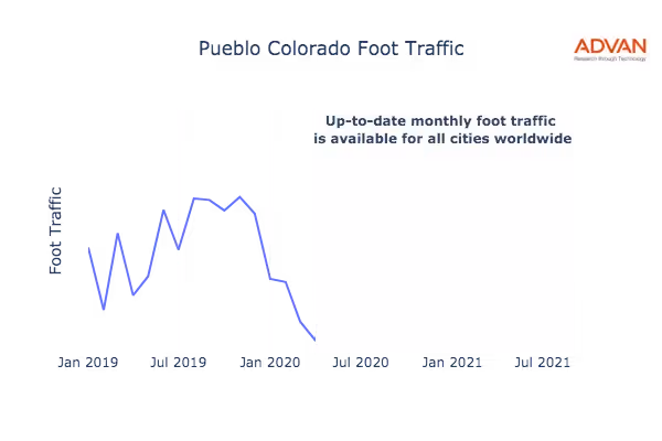 This shows the citywide foot traffic in Pueblo, CO for the last few years.: