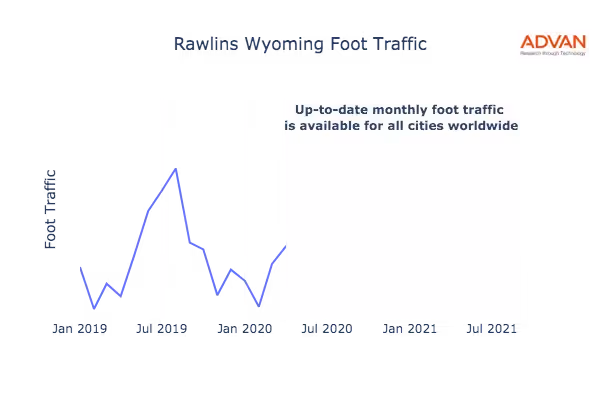 This shows the citywide foot traffic in Rawlins, WY for the last few years.: