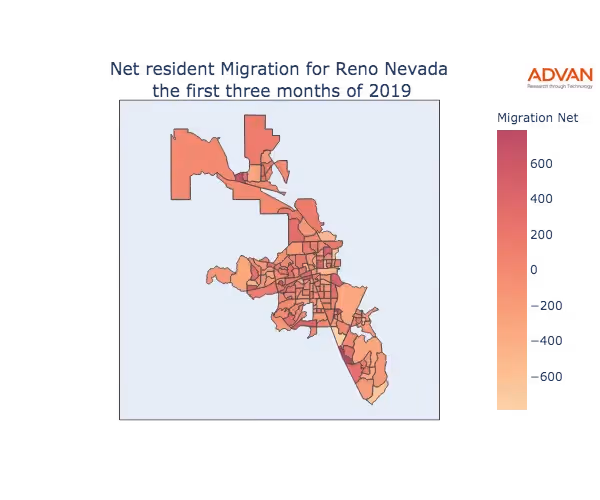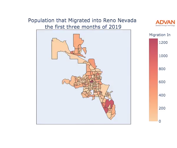 The map below shows the migration into Reno, NV by Census Block Group (CBG).