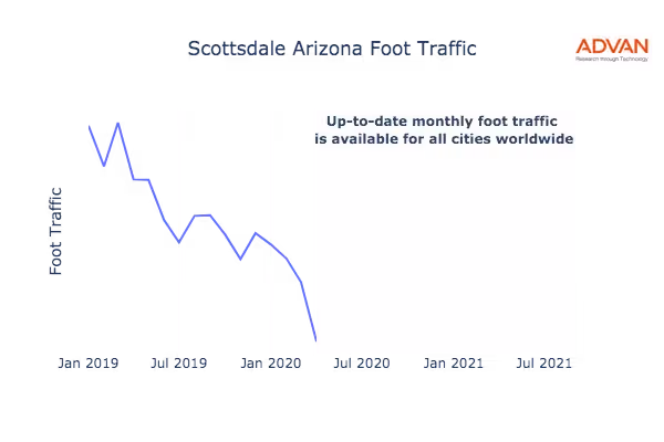 This shows the citywide foot traffic in Scottsdale, AZ for the last few years.: