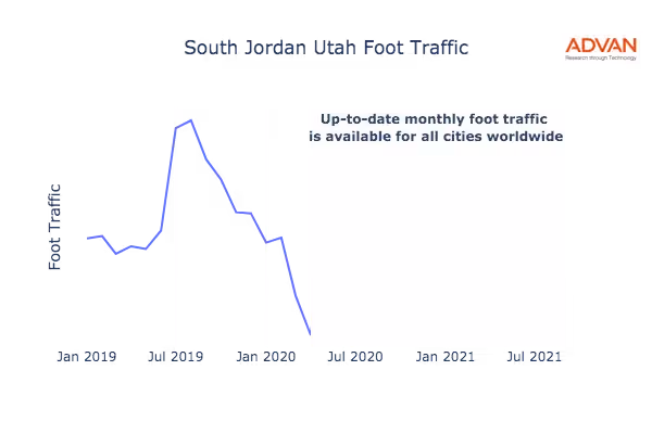 This shows the citywide foot traffic in South Jordan, UT for the last few years.: