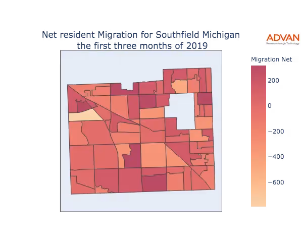 Southfield, MI Residential Migration Counts